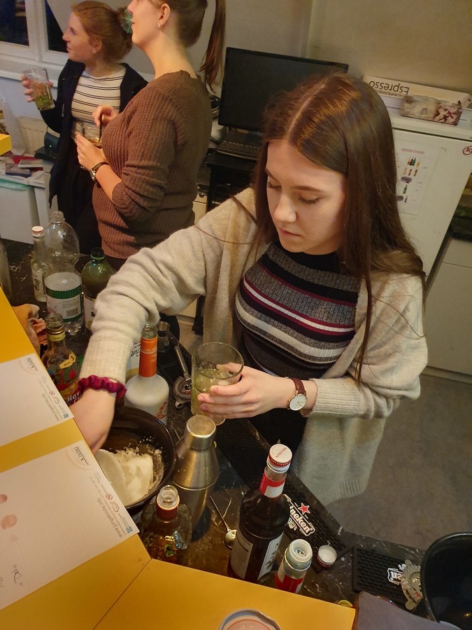An diesem Abend kam das "shaken" nicht zu kurz, denn es gab eine große Auswahl an Rezepten und Zutaten waren auch in Hülle und Fülle vorhanden. Von alkoholischen wie Pina Colada, Mojito und Cuba Libre bis zu alkfreien wie Virgin Colada war alles vorhanden. Zwischen und Nach  den Zubereitungen des eigenen Cocktails konnte man sich sportlich oder/und musikalisch beweisen. So konnte man Herausforderungen beim Singstar- oder Fifa-"spielen" annehmen. Auf jeden Fall war es wieder einmal ein gelungener Abend, der bis in den nächsten Tag andauerte....