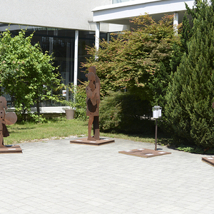 Anschließend eröffnete Katrin Windischbacher die Ausstellung "Reichtum versus Armut" und bedankte sich gleichzeitig bei Pfarrer Wolfgang Schwarz für die "Aufnahme" der Figuren. Diese wandernde Kunstinstallation wurde im Jahr 2019 konzipiert und steht nun an ihrem 21. Ausstellungsort.