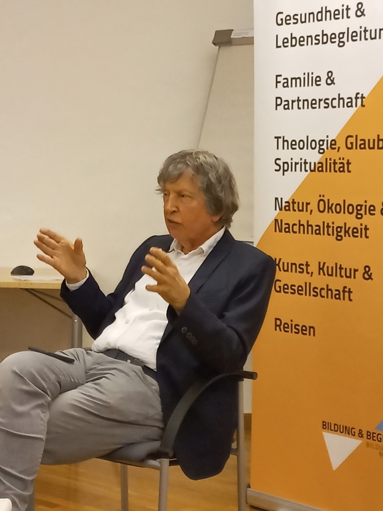 Dementsprechend groß war die Spannung unter den Teilnehmenden des Seminars am Mittwoch, 19.06.2024, – besonders auf das Neue in dem frisch im renommierten Herder-Verlag erschienenen Buch. Gleich vorweg betont der als durchaus kritisch denkend bekannte Theologe seine Intention: Er möchte den Menschen von heute „die Gestalt und Botschaft Jesu möglichst wortgetreu am biblischen Original, liebevoll und freimütig nahebringen“. Hervorgehoben wird von ihm – ein bemerkenswertes Novum, auch angeführt auf der Buchrückseite: „liebevoll“. Denn: „Streitigkeiten können wir uns in unserer Situation nicht leisten.“ In der aktuellen Kirchenkrise sieht Trummer aber zweifellos auch eine Chance, nämlich die einer Neubesinnung auf das Christliche, grundlegend Jesuanische, und weist auf die Bedeutung der Sprache hin. Diese hat gerade in Glaubensdingen für alle, besonders aber für ,Nicht-Insider‘, verständlich zu sein.