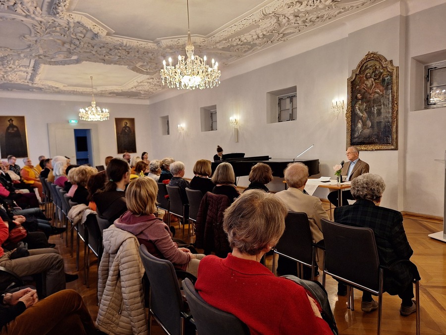 Debussy traf Springsteen – womit aus ,Hungry Heart‘ ,Coeur affamé‘ wurde – so geschehen am Donnerstag, 25.04.2024 im gut besuchten Barocksaal des Grazer Priesterseminars! Diese Grenzen aufbrechende und vielfältig verbindende Veranstaltung konnte aber mit einem weiteren Highlight aufwarten: Wer hätte gedacht, mit dem renommierten österreichischen Theologen, Prof. Paul M. Zulehner, eine Premiere anbieten zu dürfen? Es war seine erste (!) Lesung überhaupt, die er in Verschränkung mit den mit feinem Gespür und Sorgfalt ausgewählten und zum Teil selbst komponierten Musikstücken der Pianistin Thaïs-Bernarda Bauer gehalten hat!