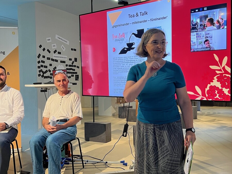 Zahlreiche an interreligiösem Dialog Interessierte waren – trotz starker Konkurrenz durch die Fußball-EM! – an diesem warmen Sommerabend des 26. Juni 2024 der Einladung zu ,Tea & Talk‘ in das Volkskundemuseum am Paulustor gefolgt, um gemeinsam mit den Vertreter:innen der fünf großen Religionsgemeinschaften den Blick auf das Friedenspotenzial der Religionen sowie konkrete Friedensinitiativen zu richten.