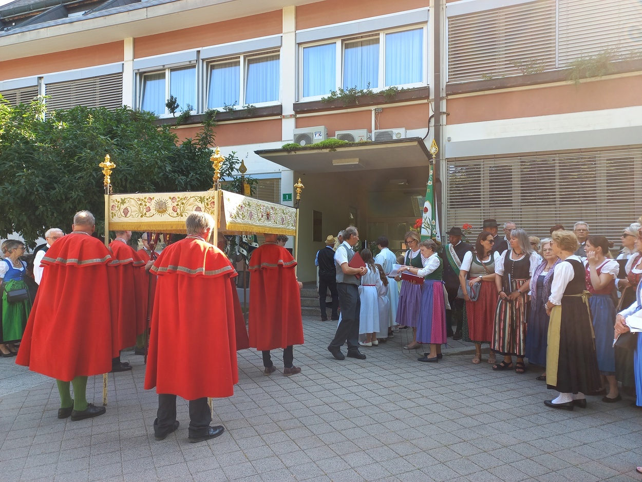 Bei prächtigem Wetter wurde Fronleichnam heuer am Donnerstag, dem 16. Juni in der Marktgemeinde Peggau gefeiert. Die festlich gestaltete Heilige Messe wurde von Prof. Helmut Schlacher in der Margarethenkirche zelebriert und musikalisch vom Gesangsverein Peggau-Deutschfeistritz und der Musikkapelle Peggau-Deutschfeistritz sehr stimmungsvoll begleitet. Anschließend führte die Fronleichnamsprozession durch den Ort bis zum Franz-Tieber-Platz. Die Oberlandler Deutschfeistritz-Peggau, die Kameradschaft vom Edelweiß und der Obst- und Gartenbauverein Deutschfeistritz-Peggau nahmen an den Feierlichkeiten ebenfalls teil. Herr Bürgermeister Hannes Tieber bedankte sich bei den Vereinen mit Peggau-Gutscheinen.