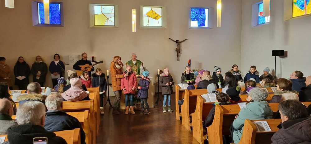 Durch die Unterstützung der Sänger.innen des Erstkommunion-Ensembles unter Katharina Wesener und Toni Gschier wurden wir schon mit den schwungvollen Liedern vertraut.