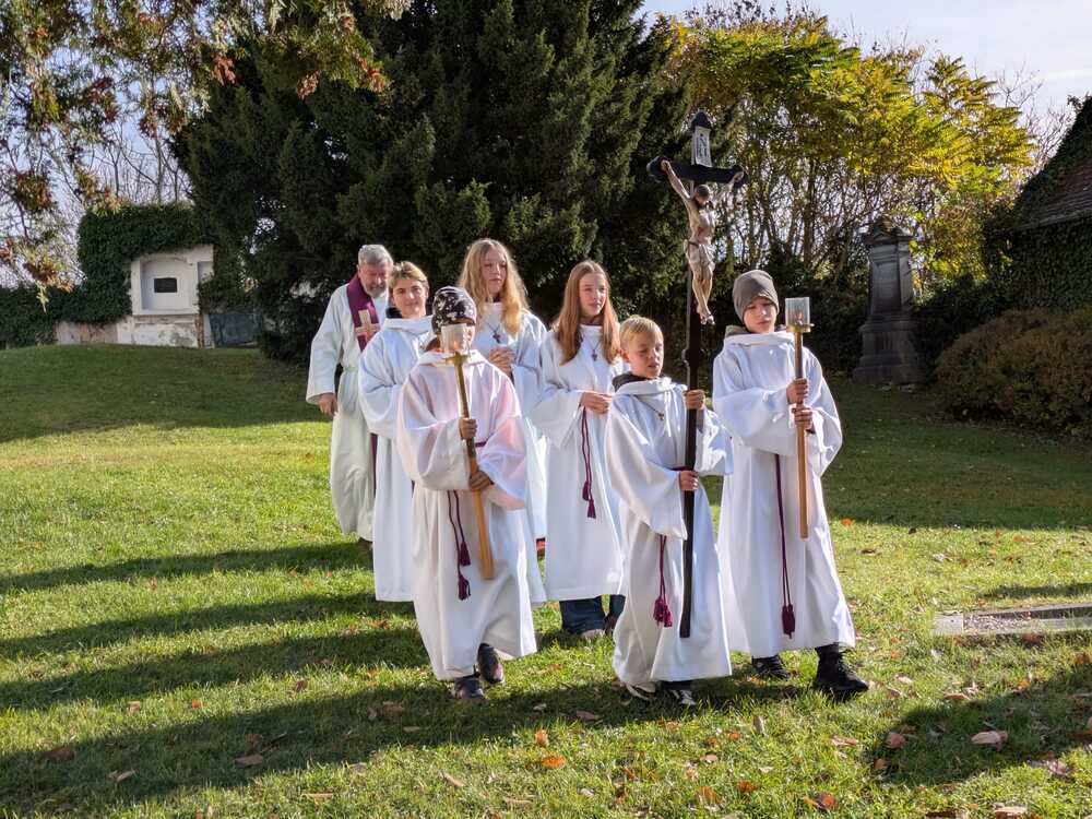 Danach gingen die Ministranten und unser Herr Pfarrer auf den "Kirchfriedhof" um die wenigen Gräber dort zu segnen.