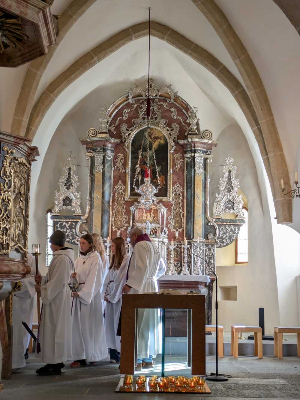 Am Ende des Gottesdienstes wurden alle Namen der Verstorbenen aus Deutschfeistritz des vergangenen Jahres (seit Allerheiligen 2024) vorgelesen und für jeden Verstorbenen wurde eine Kerze entzündet.