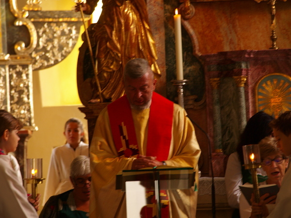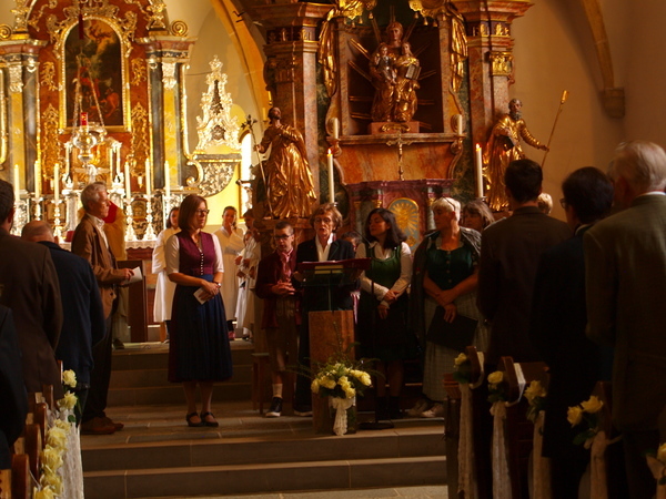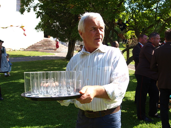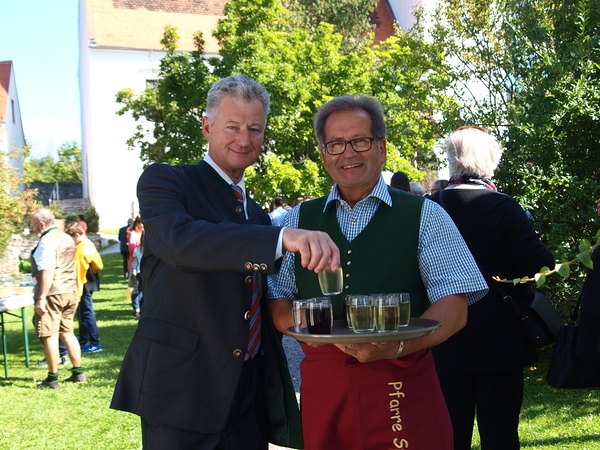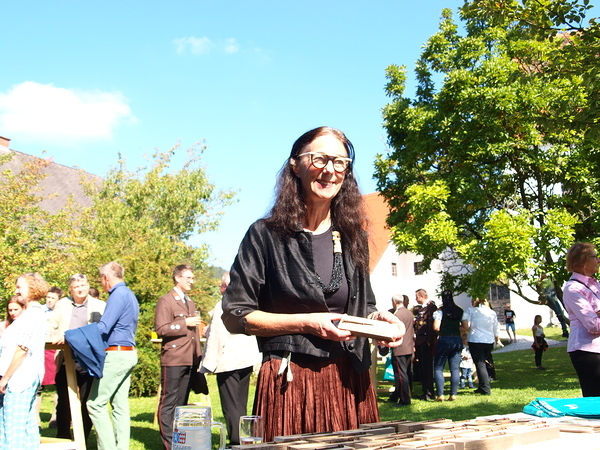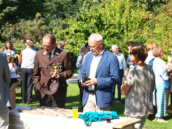 Nach der Segnung der Kreuze lud der Pfarrgemeinderat zu einer Agape ein, bei der bei wunderschönem Spätsommerwetter Gelegenheit zu Gesprächen, Gedankenaustausch und Informationen über das gesamte Projekt bestand.