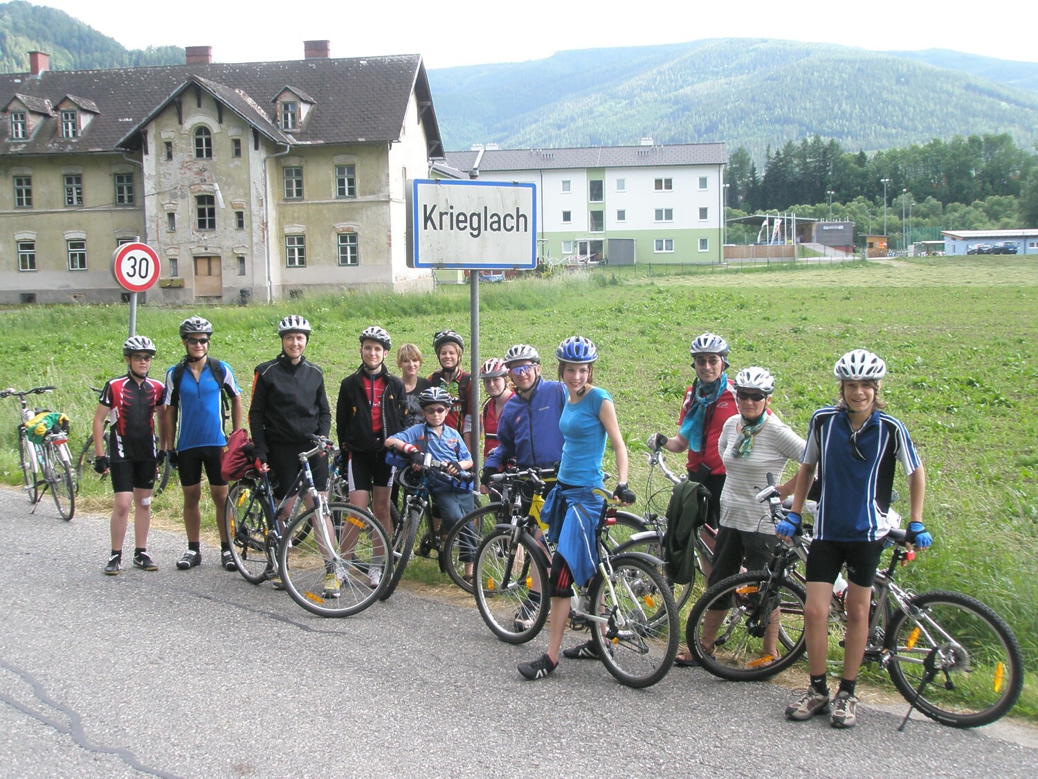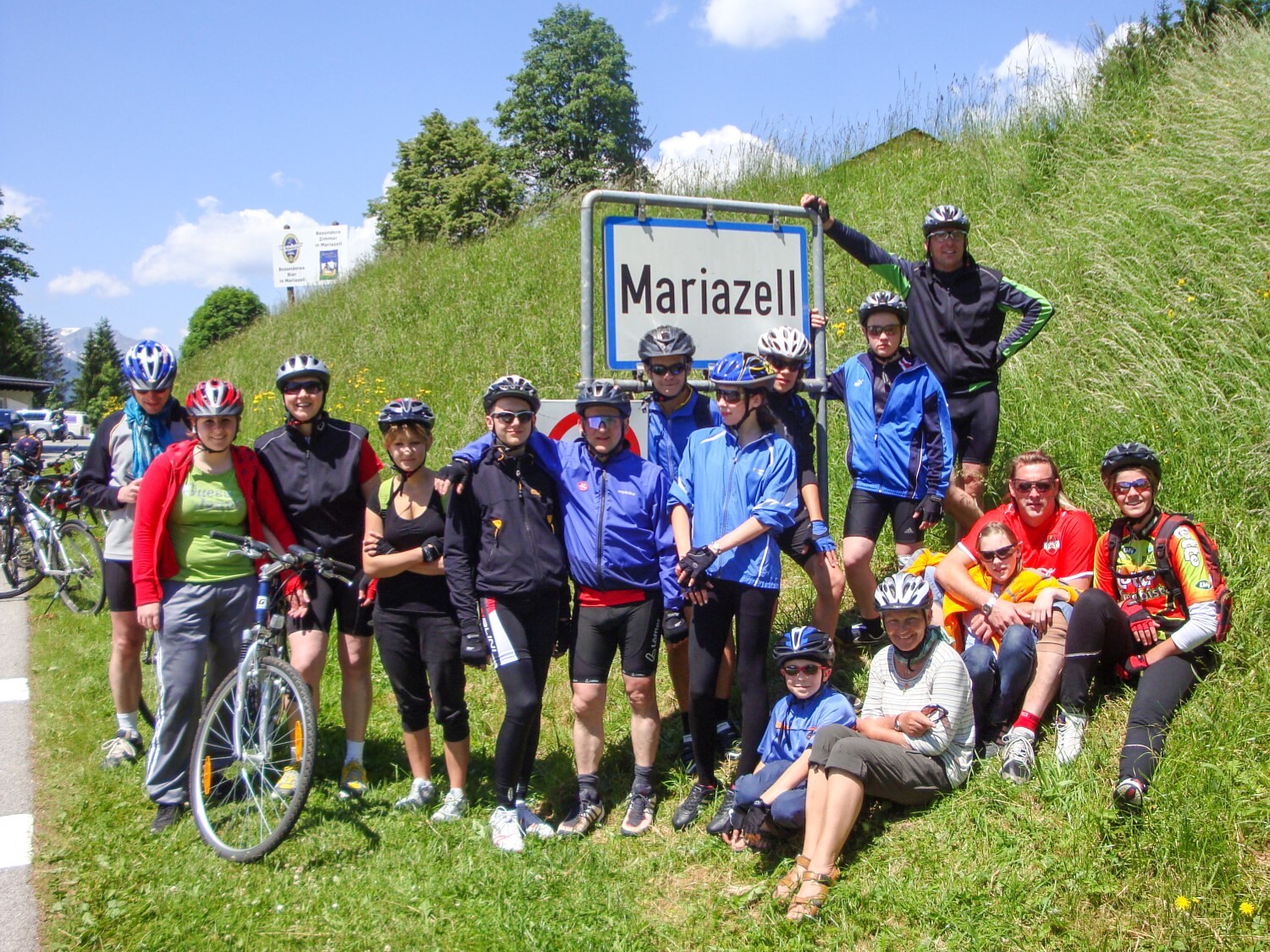 In Mariazell angekommen: Gruppenfoto bei der Ortstafel