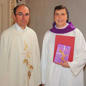 Und auch Sr. Maria beginnt einen neuen Dienst: Sie wurde nach einer Ausbildung vom Bischof als Begräbnisleiterin in die Pfarre gesendet und bekam von Pfarrer Hans Karner das Dekret dafür im heutigen Gottesdienst überreicht. Dabei trug sie eine weiße Albe mit einem violetten Kragen, wie es für Begräbnisleiterinnen vorgesehen ist.