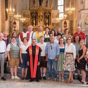 Hintere Reihe (v.l.): Martin Rapp (Regionalkoordinator), Georg Salvenmoser (Pastoralreferent), Elfriede Rieger (pastorale Mitarbeiterin), André-Jacques Kiadi (Vikar), Peter Schlör (Pastoralreferent), Horst Hüttl (Pfarrer), Christina Eisenberger (Pfarrsekretärin), Veronika Mautner (Pfarrsekretärin), Sonja Viertler (Diözesanratsdelegierte), dahinter Sr. Roswitha Bauer (Oberin Kloster Dult), Margret Schinnerl (Pfarrsekretärin), Martin Trummler (Regionalkoordinator) und Ludwig Fassl (Kirchenratsvorsitzender Adriach)