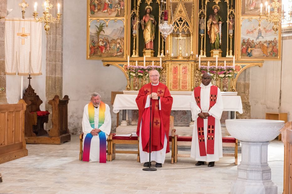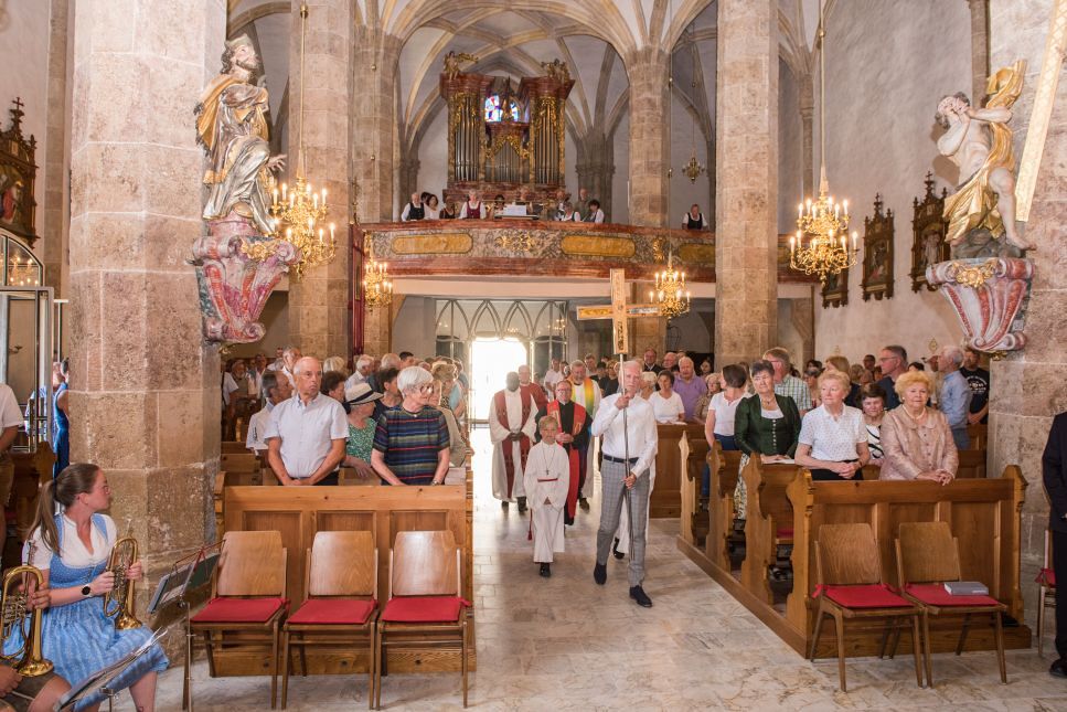 Vergangenen Sonntag, 29. Juni, konnte Pfarrer und Seelsorgeraumleiter Ronald Ruthofer seine Begrüßungsworte an eine volle Semriacher Kirche richten. Aus den sieben Pfarren des Seelsorgeraums waren zahlreich Menschen gekommen, um miteinander Messe zu feiern. Pfarrer Martin Trummler aus Voitsberg verlas im Auftrag ein Grußwort von Bischof Wilhelm Krautwaschl und leitete die Feier, Regionalkoordinator Martin Rapp erläuterte in einer kurzen programmatischen Ansprache, wie ein Seelsorgeraum funktionieren kann.