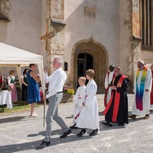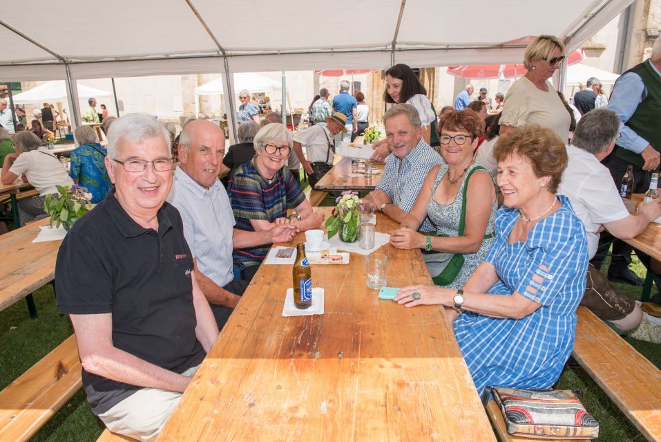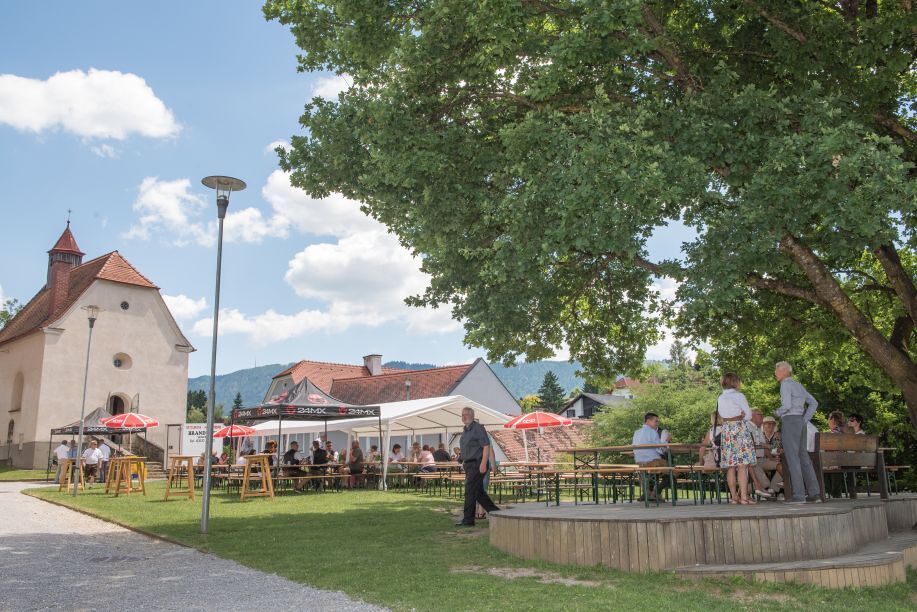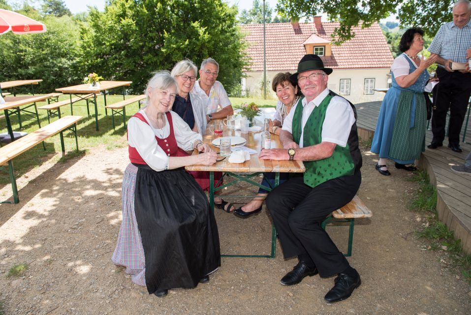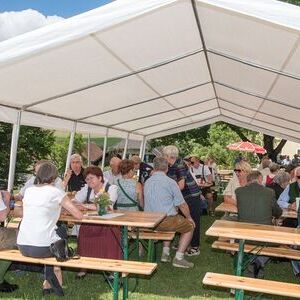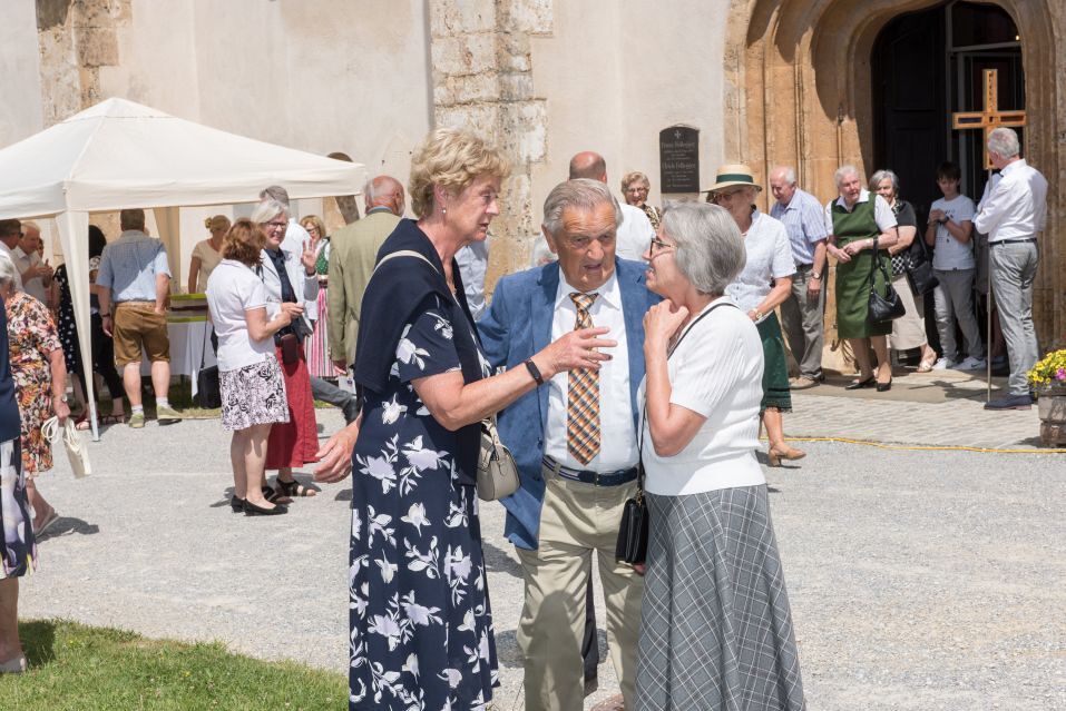 Gesellig ging es vor der Kirche weiter: Kühle Getränke halfen bei der hohen Temperatur, Frankfurter, Aufstrichbrote und Kuchen gegen den Hunger, außerdem war unter anderem für musikalische Unterhaltung gesorgt. Insgesamt war dieses Startfest eine Premiere:  Die sieben Pfarren Röthelstein, Frohnleiten mit Adriach, Übelbach, Deutschfeistritz mit Peggau, Stübing, Gratkorn und Semriach haben Messfeier und Fest miteinander und gemeinsam vorbereitet und organisiert.  Der Start in die Zukunft Kirche bei uns ist gelungen!