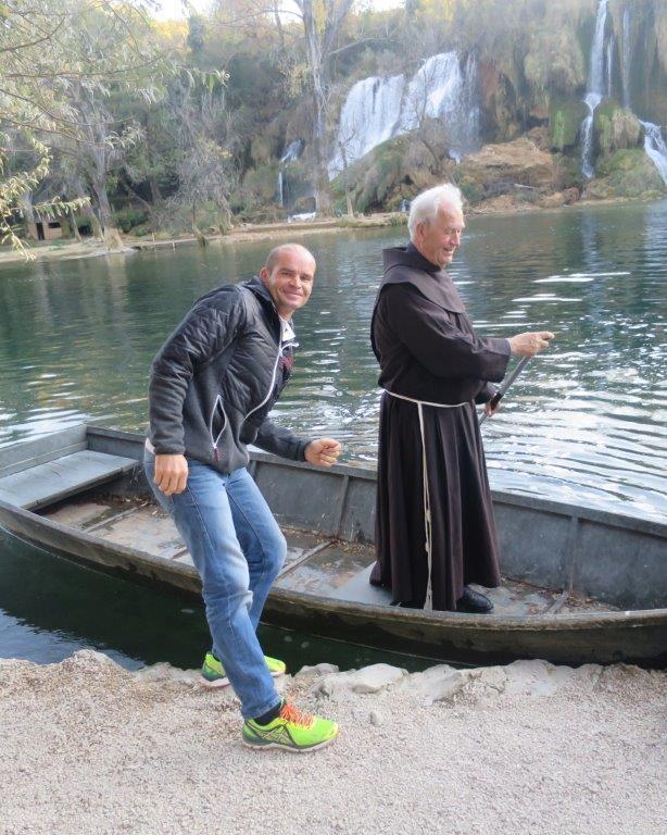 Nach der heiligen Messe ging es am 2.Tag nach Mostar. In der neuerbauten Franziskanerkirche besuchten wir die Krypta, in der die von den Frohnleitnern gespendeten Sessel aufgestellt sind. Anschließend gingen wir über die nach der Zerstörung im Jahre 1993 wiederaufgebaute Brücke über die Neretva, die den christlichen Teil der Stadt mit dem muslimischen verbindet.