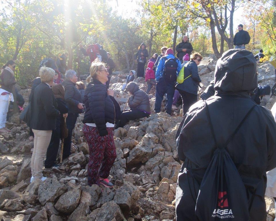 Den religiösen Höhepunkt bildete der 3.Tag, an dem wir am Vormittag den Kreuzberg bestiegen. Das steinige und steile Gelände setzte uns zu, die einzelnen Kreuzwegstationen aber gewährten uns Gelegenheit zum Atemholen, zum Gebet, zur Besinnung auf wirklich Wichtiges in unserem Leben. Genauso steil und steinig bot sich uns am Nachmittag der Erscheinungsberg. Wieder waren die einzelnen Stationen und der Platz, an dem die Gospa erstmals den Kindern erschienen ist, Orte der Ruhe und des Gebetes.