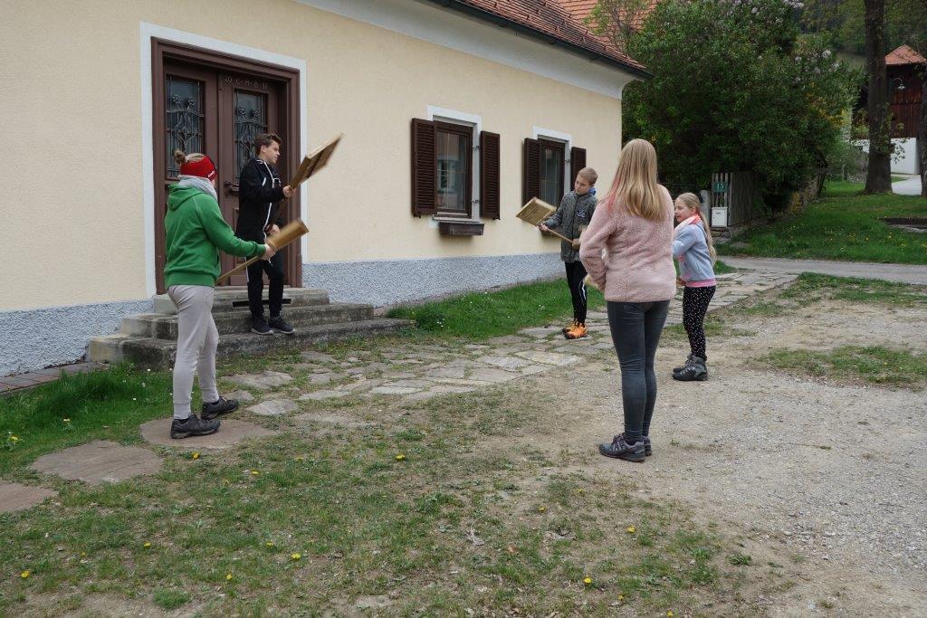 Das Ratschen ist ein schöner Brauch, der in der Karwoche in Adriach schon lange Tradition hat und sehr gepflegt wird. Dabei zogen heute 9 Mädchen und Buben, alles Ministrantinnen und Ministranten, durch den Ortsteil Adriach von Haus zu Haus, um die Gläubigen mit einem Spruch, begleitet von heftigem Lärm, an die Gebetszeiten und Gottesdienste zu erinnern.