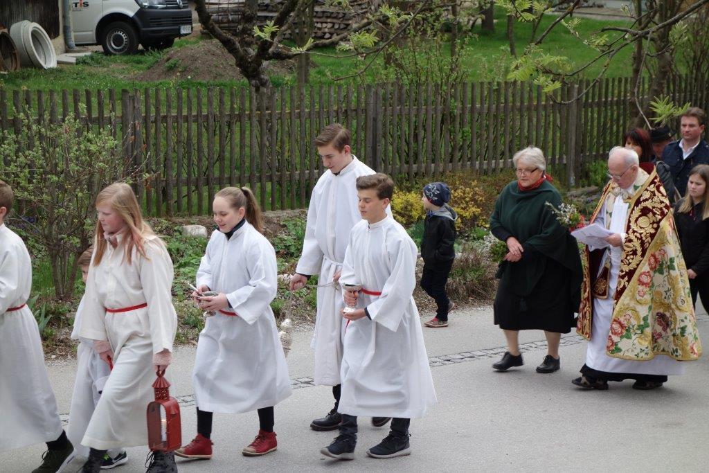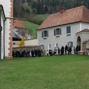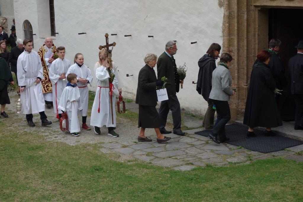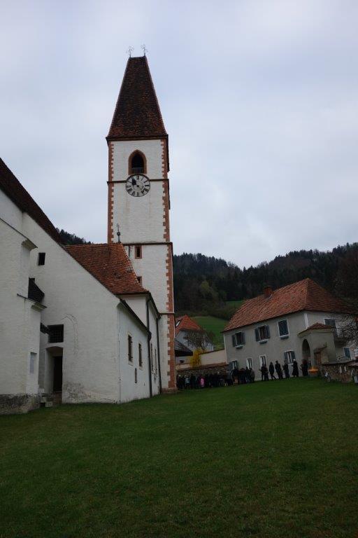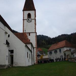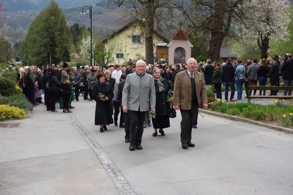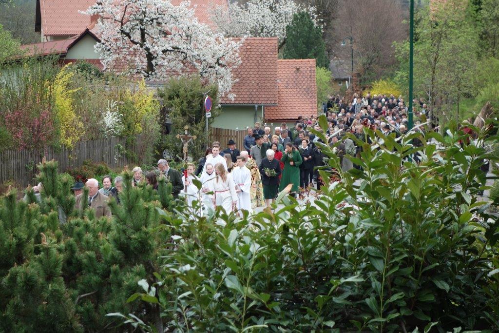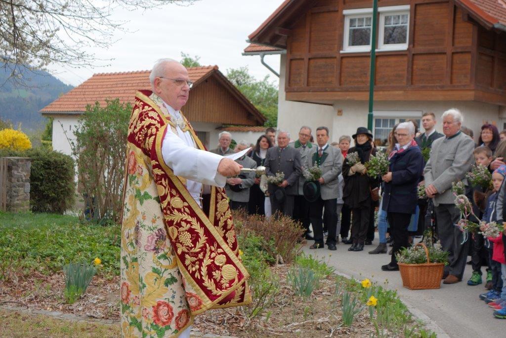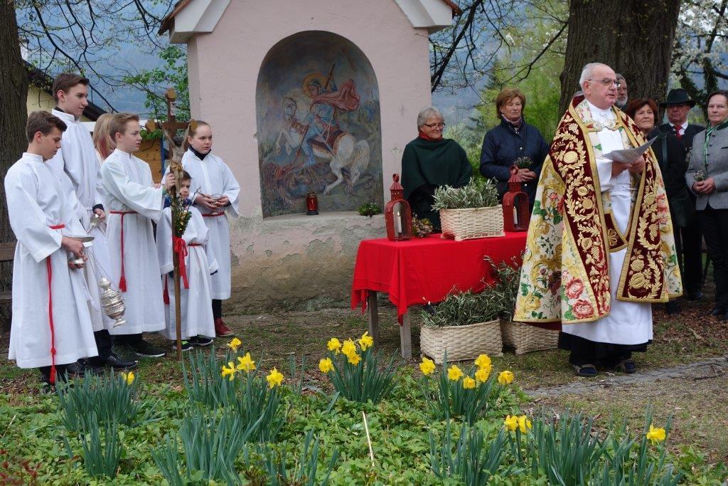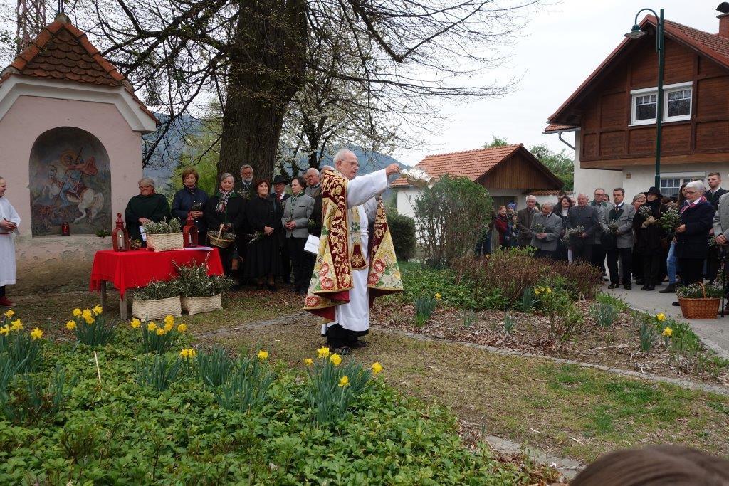 Die heurige Palmweihe beim St.-Georgs-Bildstock gegenüber dem Volkshilfe Seniorenzentrum in Adriach nahm Pater Dominikus vor - musikalisch umrahmt von der Adriacher Sängerrunde. Hernach folgte die traditionelle Palmprozession zur ehrwürdigen St.-Georgs-Kirche. Darin wurde dann die heilige Messe gefeiert und das Evangelium von der Passion Christi gelesen.