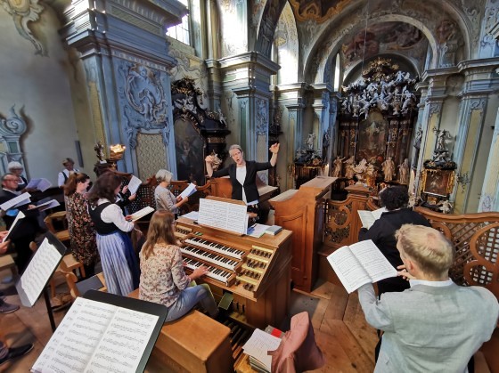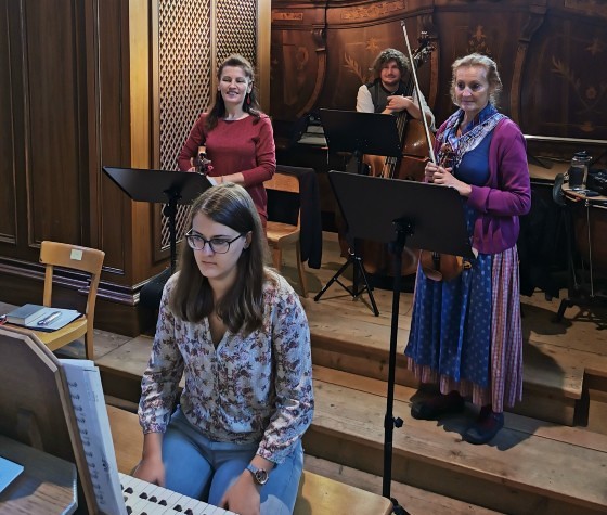 Wir konnten die „Missa in B“ (KV 275) von Wolfgang Amadeus Mozart wie geplant zur Aufführung bringen, allerdings in stark verkleinerter Besetzung: ungefähr der halbe Chor musizierte zusammen mit dem Solistenquartett Birgitta Wetzl, Elisabeth Weber, Markus Sölkner und Ewald Nagl das schwungvolle Werk in Begleitung eines Streichtrios unseres Orchesters und mit Christina Eichberger an der Orgel. Die feiernde Gemeinde und wir Ausführende selbst hatten große Freude an den schon so lange vermissten feierlichen Klängen einer Chor-Orchester-Messe!