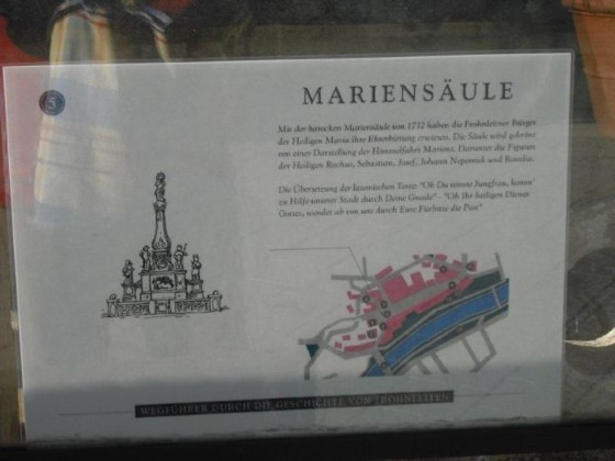 An der Rückseite der Mariensäule stehen zwei lateinische Inschriften, die man so übersetzen kann: