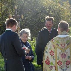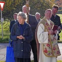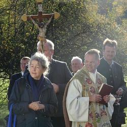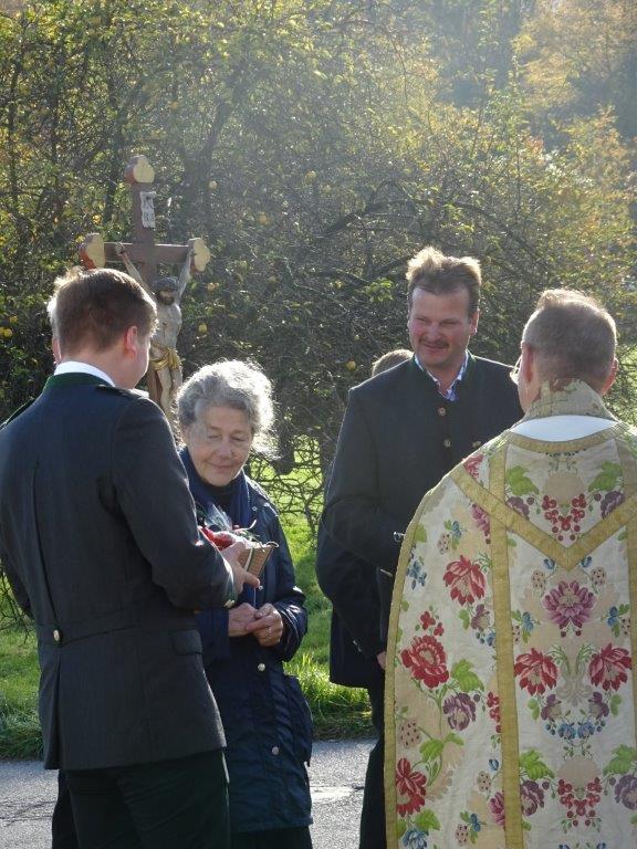 Aus der Überlieferung ist auch bekannt, das bei diesem Wegkreuz die Verstorbenen vom Pfarrer empfangen, eingesegnet und von dort aus zum Friedhof begleitet wurden. Es ist allerdings nicht bekannt, ob dieses Kreuz einem Heiligen geweiht ist. Im Jahreskreis der Kirche finden weder Messen noch Andachten an diesem Kreuzungspunkt statt.