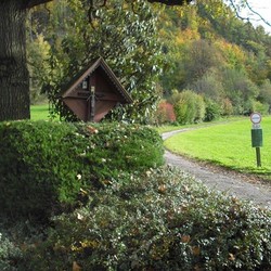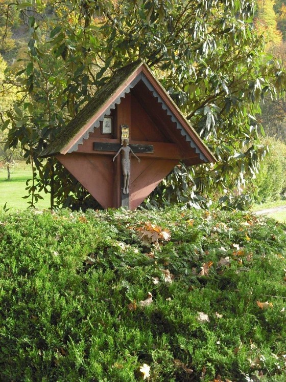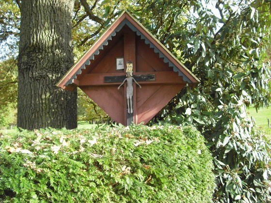 Auf dem Weg nach Pfannberg, an der Abzweigung zum Gut Pichlhof, steht ein rötliches Wegkreuz aus Holz mit einem Kruzifix, der künstlerischen Darstellung des gekreuzigten Christus. Das Kruzifix (lat. „ans Kreuz geheftet“) ist Sinnbild für das Opfer Christi, das dieser zur Erlösung der Menschheit gebracht hat.