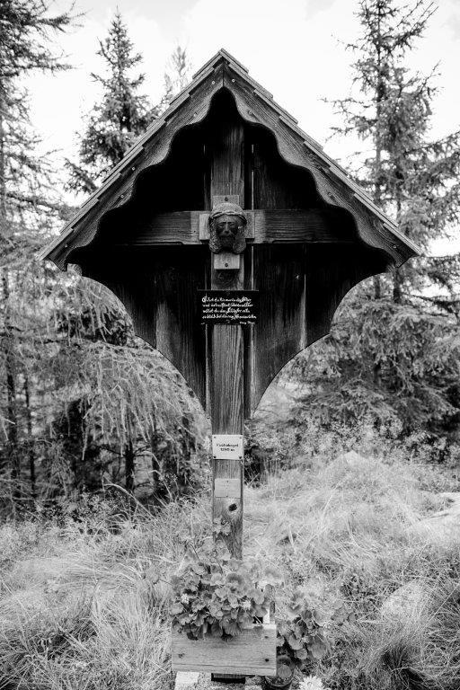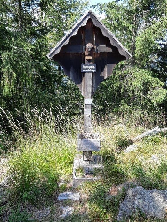 Das Aufstellen eines Kreuzes auf dem Gipfel war ein langgehegter Wunsch des früheren Besitzers Georg Prietl vulgo Fuchs. Leider konnte er die feierliche Segnung nicht mehr miterleben, er war bereits am 8. August 1995 verstorben. Von ihm stammt aber der sinnige Spruch, der auf einer kleinen schwarzen Tafel mit weißer kunstvoller Handschrift am Holzkreuz steht: