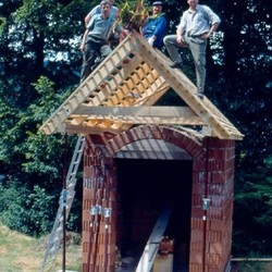 Mit Vermessungsarbeiten vor dem Haus Mayr-Melnhof Straße 8 begann am 14. März 1997 der Bau der Kapelle. Durch viel Idealismus und Eigenleistung konnte der JSV diese schöne Gedenkkapelle in nicht einmal zwei Jahren errichten. Sie steht auf einem Streifenfundament aus Beton und wurde aus Betonziegeln und gelochten Mauerziegeln gebaut, auf denen eine hölzerne Dachkonstruktion ruht. Das Vordach wird von zwei Lärchensäulen getragen, die Zimmermeister Josef Konrad jun. kunstvoll gestaltete. Die 850 Biber-Dachziegel und die 15 Firstziegel wurden von den Vereinsmitgliedern mühevoll bei einem abbruchreifen Nebengebäude in Schloss Weyer abgetragen und beim Kapellenneubau gereinigt wieder verwendet. Vor dem Eingang, der mit einer Tür aus Schmiedeeisen verschlossen ist, wurde ein Vorplatz mit 12 m² Steinplatten ausgelegt. In der zentralen Mauernische der Kapelle befindet sich ein Gemälde der Grazer Künstlerin Christin Berlin. Sie verwendete dazu ein Foto des obersteirischen Reitinggebirges, dessen 2.215 Meter hoher Gößeckgipfel den höchsten Punkt im gesamten Forstbetrieb Mayr-Melnhof-Saurau darstellt. Dieses Foto wurde auf eine Overheadfolie übertragen und mit einem Projektor an die Kapellenwand projiziert, um der Malerin die naturgetreue Darstellung des Gebirgszugs zu erleichtern.