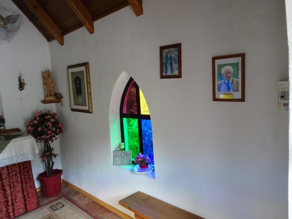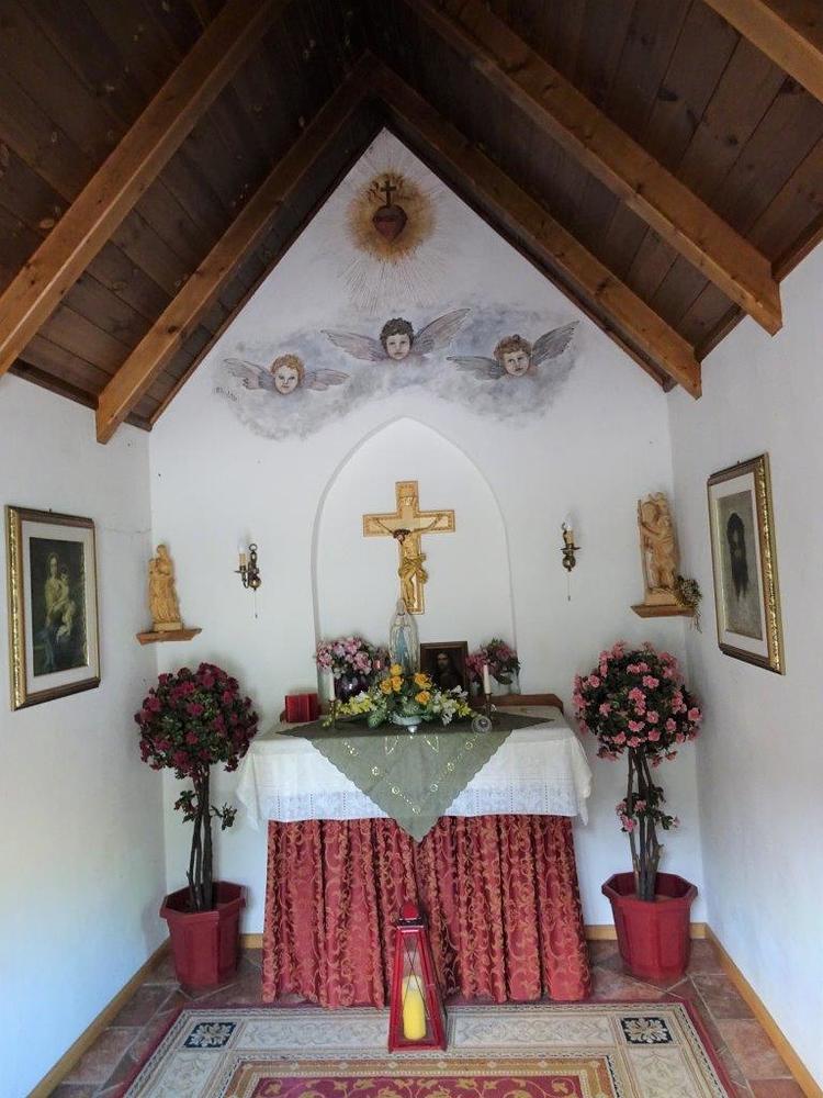Die Kapelle hat auch eine eigene Glocke, die in der bekannten Glockengießerei Grassmayer angefertigt wurde und die Obmann Franz Grabmayer sen. jeden Sonn- und Feiertag um 12 Uhr läutet. Der Altar im Inneren ist schlicht gehalten, in der Mitte ist ein aus Edelholz geschnitztes Kruzifix angebracht und über dem Altar sind drei Engel zu sehen. Eine Statue auf der linken Seite zeigt die Heilige Maria, auf der rechten Seite wird der Heilige Christophorus dargestellt.