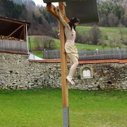 Schon in die Jahre gekommen und dementsprechend verwittert war es nun erneut an der Zeit für eine Generalsanierung. Zu diesem Zweck wurde 2023 von Ludwig Fassl vlg. Hacker ein neues 3,0 m hohes, verleimtes Lärchenkreuz errichtet, dessen Holz von Famlie Leitner vlg. Kotzmayer stammt.