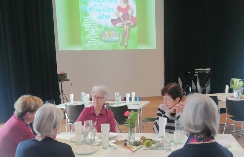 Der ein oder andere Schla­ger weckte wie­der leb­haf­te Er­in­ner­un­gen und bei einem Quiz war die Text­sicher­heit der Be­such­er:in­nen ge­fragt. Es wurde ge­sun­gen und ei­frig ge­ra­ten und so ver­ging die Zeit wieder wie im Flug.