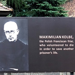Maximilian Kolbe wurde 1894 in Zdunska-Wola (Polen) geboren. Nach Eintritt in den Orden der Franziskaner-Minoriten studierte er in Rom Theologie, wurde 1918 zum Priester geweiht und gründete eine Vereinigung für das Apostolat katholischen Schrifttums. In Polen und Japan widmete er sich mit zielstrebigem Einsatz der Errichtung von katholischen Pressezentren. 1941 wurde er von den deutschen Nationalsozialisten verhaftet und in das Konzentrationslager Auschwitz gebracht. Am 30. Juli ging er für einen Familienvater, der als Geisel für einen entflohenen Häftling mit neun anderen Polen hätte sterben müssen, freiwillig in den Hungerbunker. Nach 14 Tagen war er noch bei vollem Bewusstsein. Am Vorabend von Mariä Himmelfahrt machte eine Phenolspritze der Marter ein Ende. Kolbe wurde 1971 von Paul VI selig- und 1982 von Johannes Paul II heiliggesprochen.