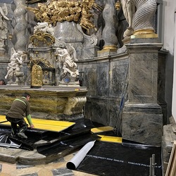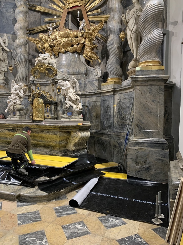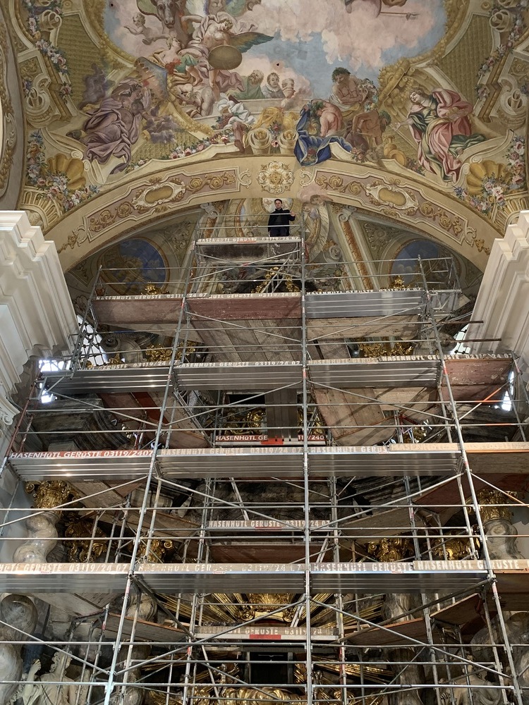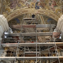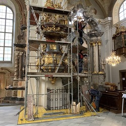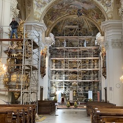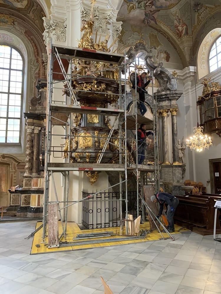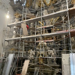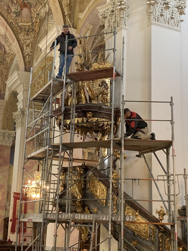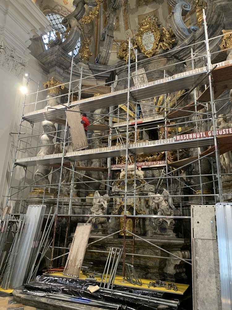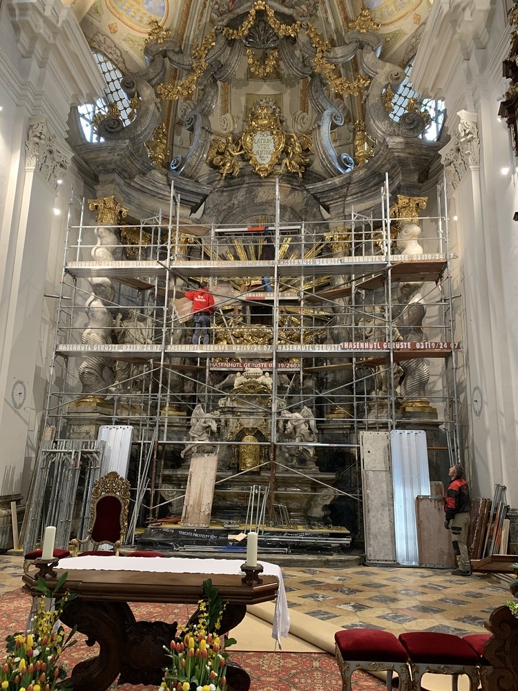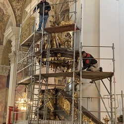 In der Basilika wurden in dieser Woche der Hochaltar und die Kanzel eingerüstet.