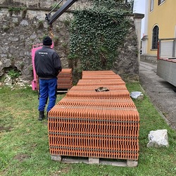 In dieser Woche wurden die neuen Dachziegel geliefert.