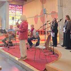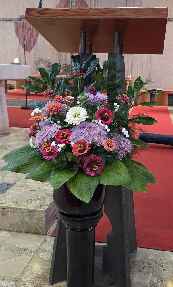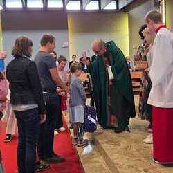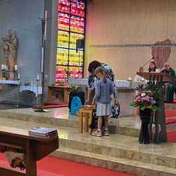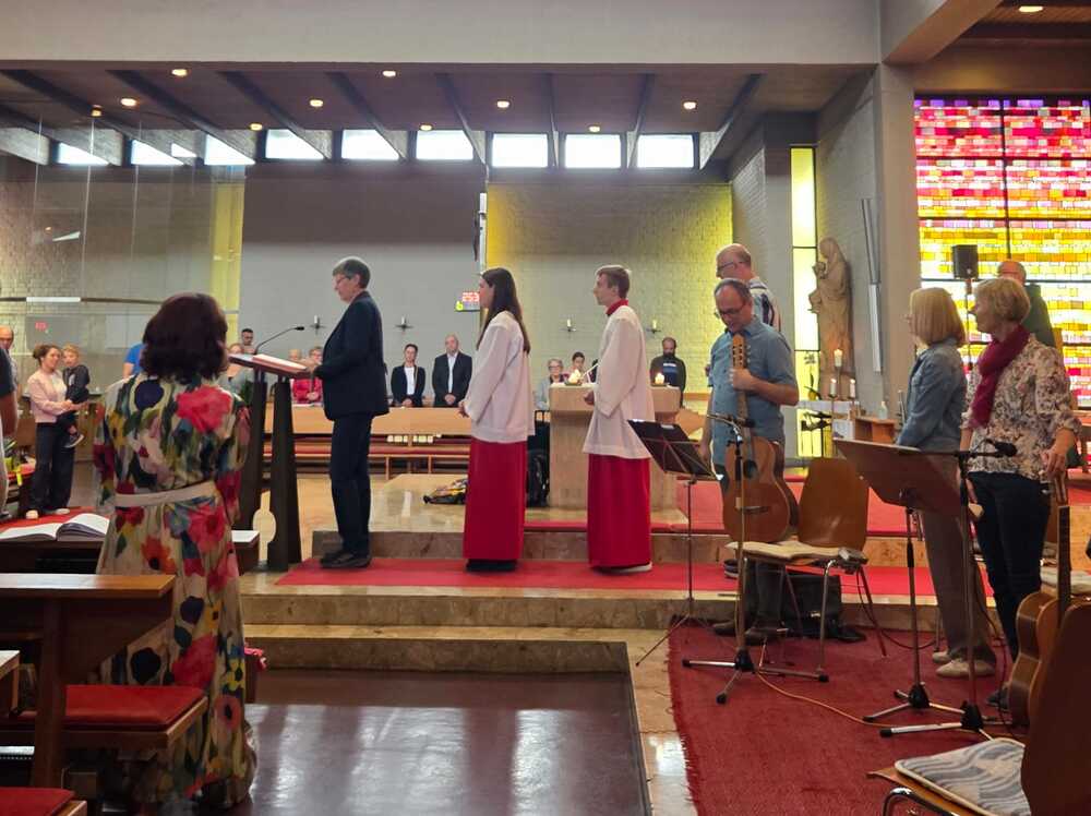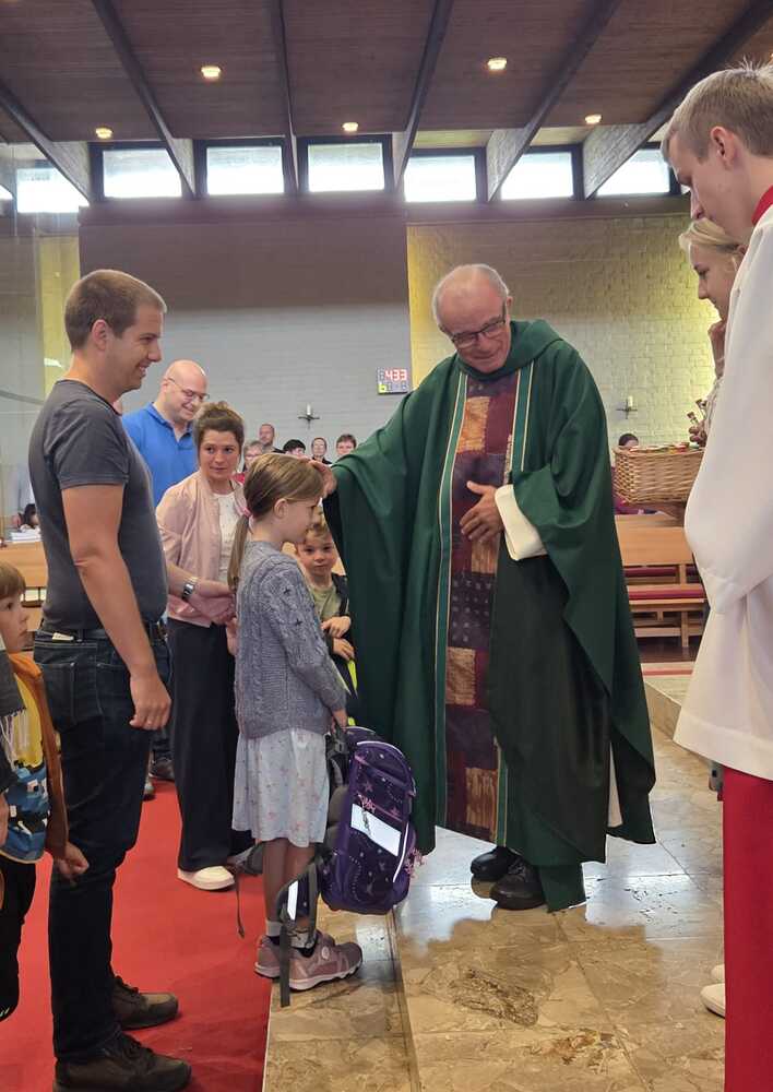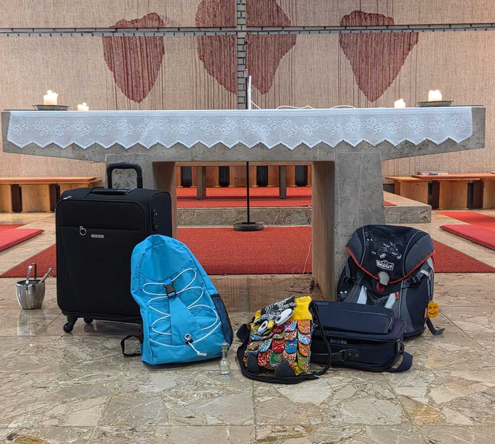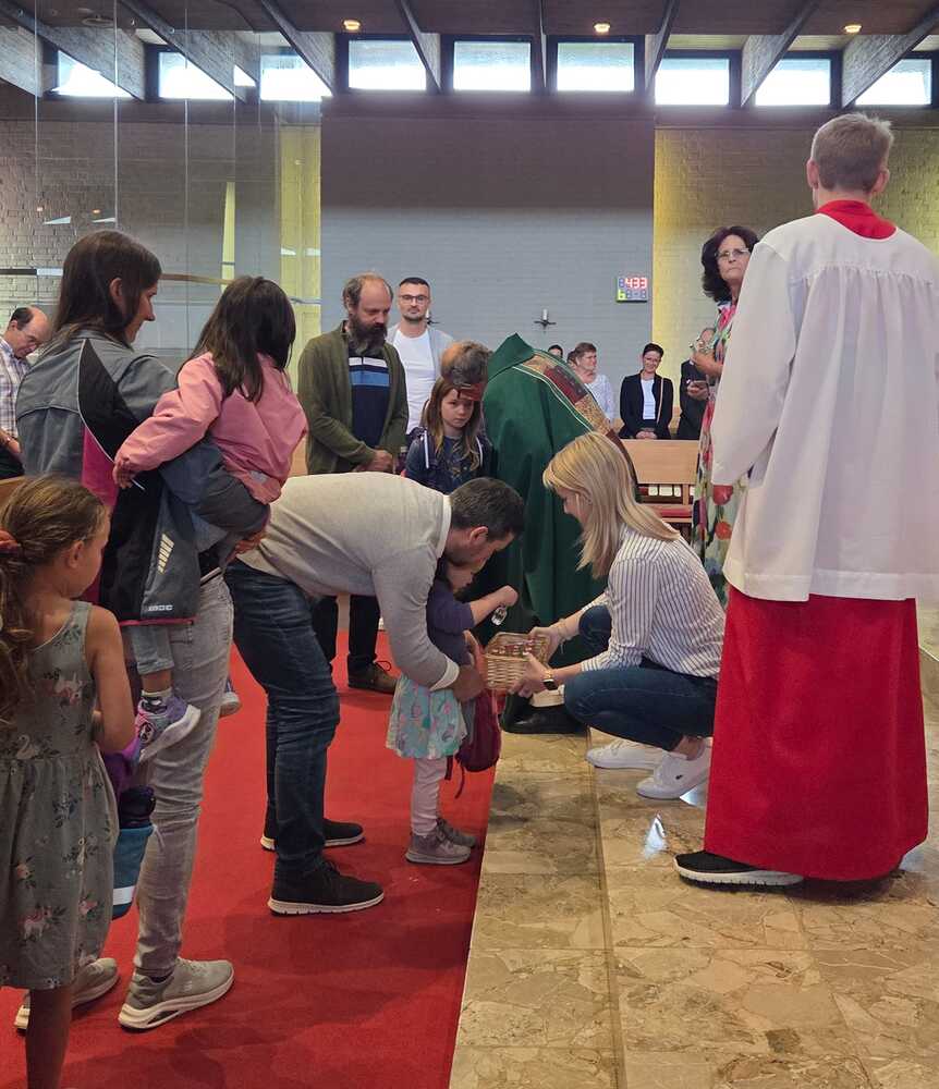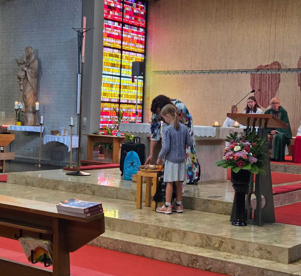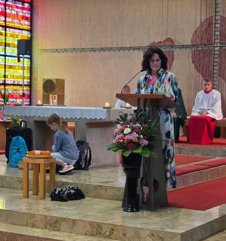 Gesegnet und gestärkt konnten die Gottesdienstbesucher:innen das neue Schul- und Arbeitsjahr beginnen. Alle Kindergarten-, Schultaschen, Unirucksäcke, Laptoptaschen...und Koffer wurden mit ihren Besitzer:innen mit dem Segen Gottes und dem Wissen "Ich bin nicht allein" begleitet. Als Erinnerung daran wurden kleine Segens- und Stärkungssymbole verteilt. Tina Schörgi lud alle ein wieder mehr zu segnen, was jede und jeder darf, und den Mitmenschen Gutes zu wünschen: durch ein Kreuz auf die Stirn beim Gute Nacht sagen, beim Anschneiden eines Laib Brotes, beim Abschied mit Weihwasser.... Alle Kinder erhielten kleine Weihwasserfläschchen und die Erwachsenen die Erinnerung, dass wir "Gott befohlen" sagen, wenn wir "tschüss" sagen, das vom französischen a dieu kommt oder "God be with you" beim Gruß "bye, bye". Ein gemischter Chor hat die Feier wunderschön musikalisch gestaltet.