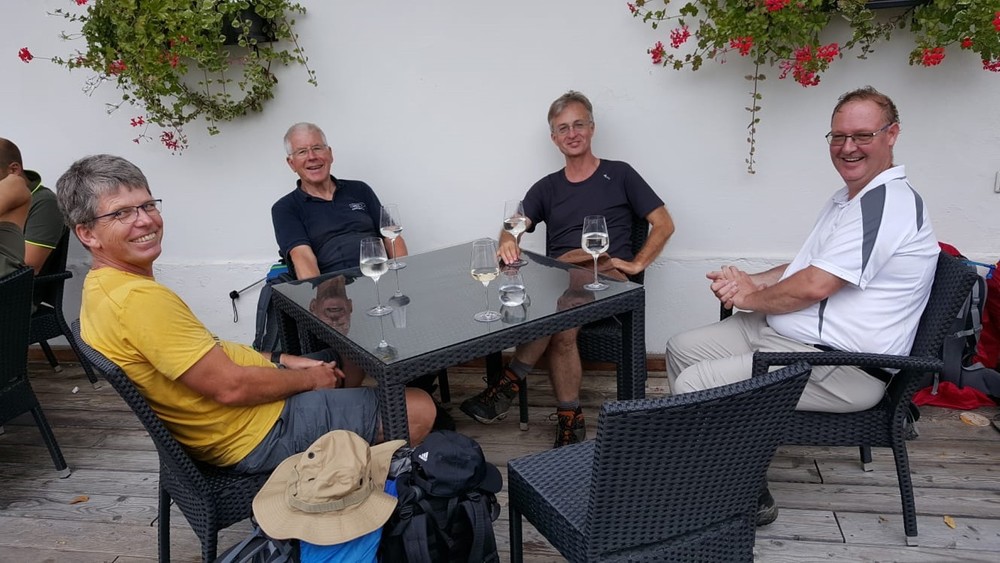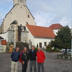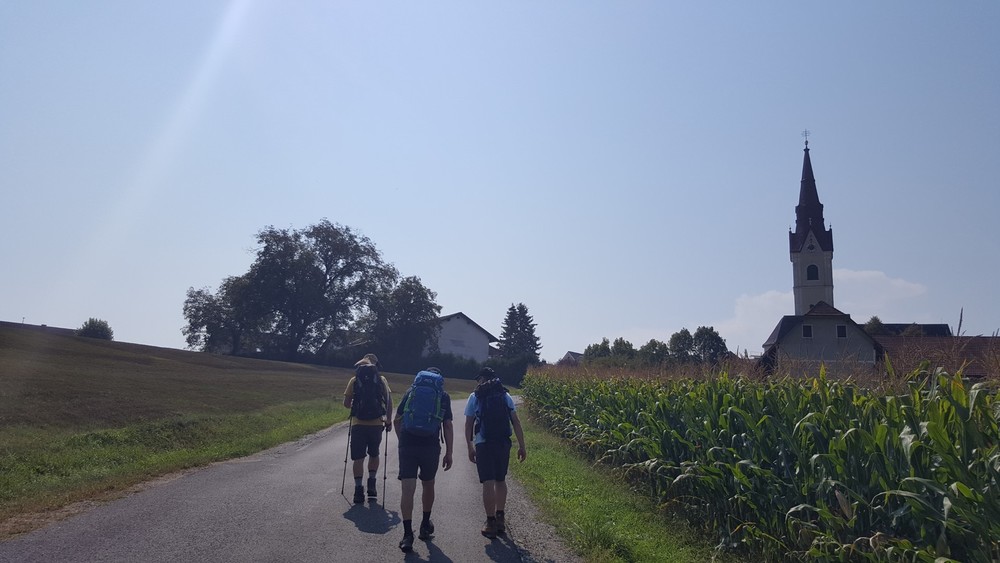 Am zweiten Tag führte uns der Weg - alle gut beschirmt (siehe Foto) - bei nassfeuchtem Wetter weiter nach Gamlitz. An der Ratscher Weinstraße überquerten wir die Staatsgrenze nach Sveti Kungota. Die Nächtigung erfolgte in Marburg.