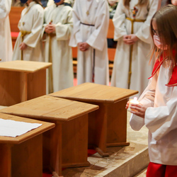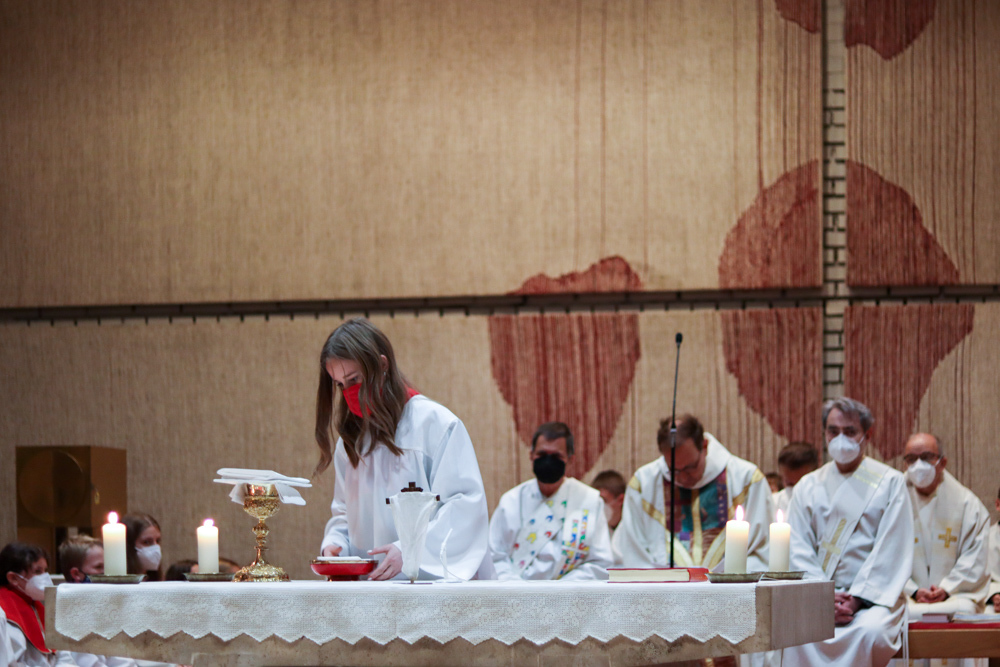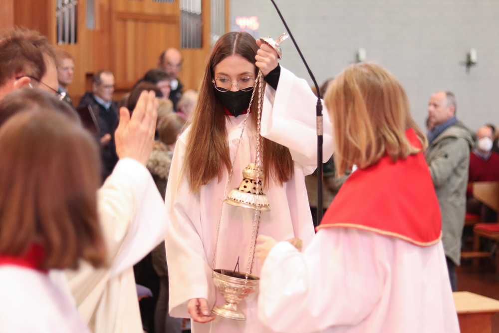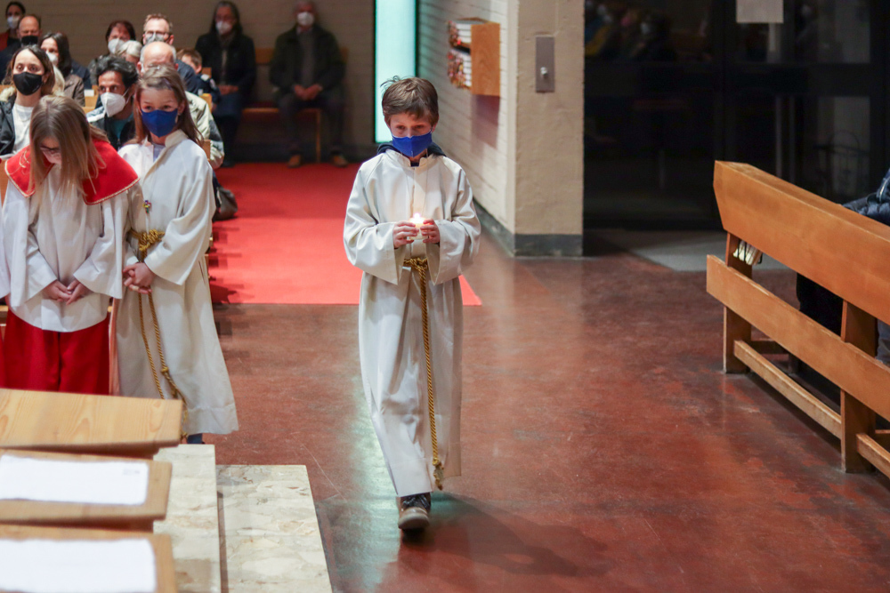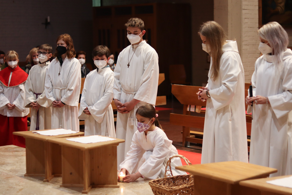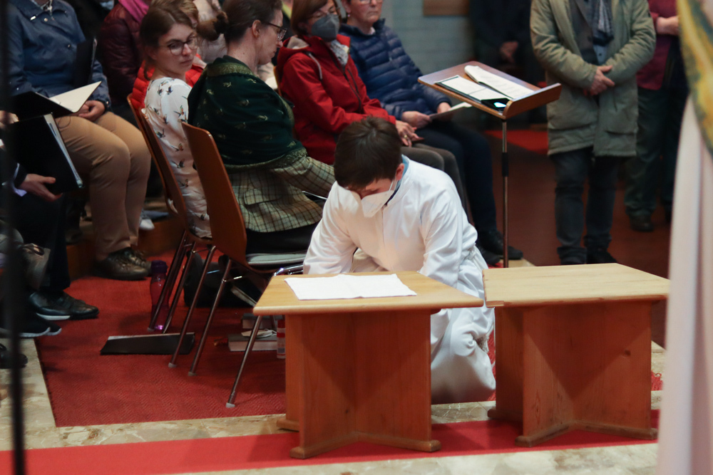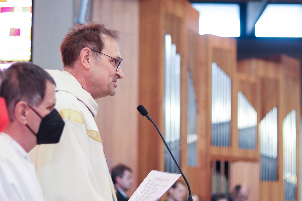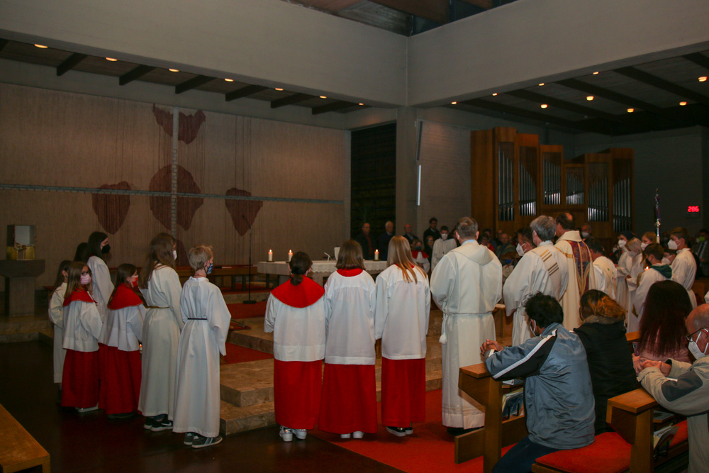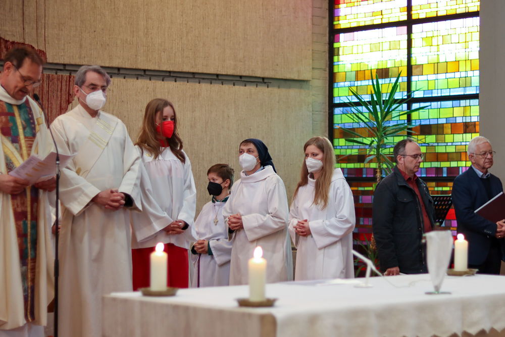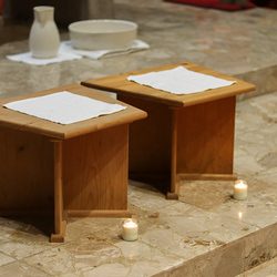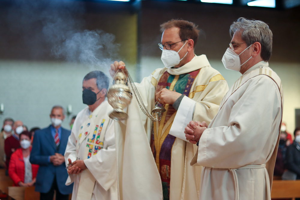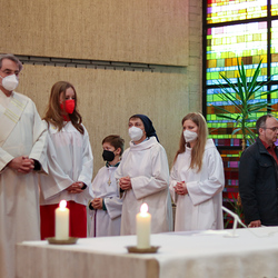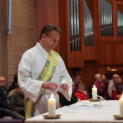 In einer etwas anders gestalteten Fußwaschung wurde jenen gedacht, die nicht oder nicht mehr am Leben der Kirche teilnehmen können oder möchten. Die Stühle blieben leer. Symbolisch für Rand- und Zielgruppen und jene Menschen, die unsere Gesellschaft mitprägen, wurden Kerzen entzündet. Als Zelebranten fungierten unsere drei Priester, drei Diakone sowie alle Pastoralreferentinnen und Referenten, welche den Sendungsauftrag im Seelsorgeraum Kaiserwald erfüllen.