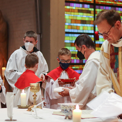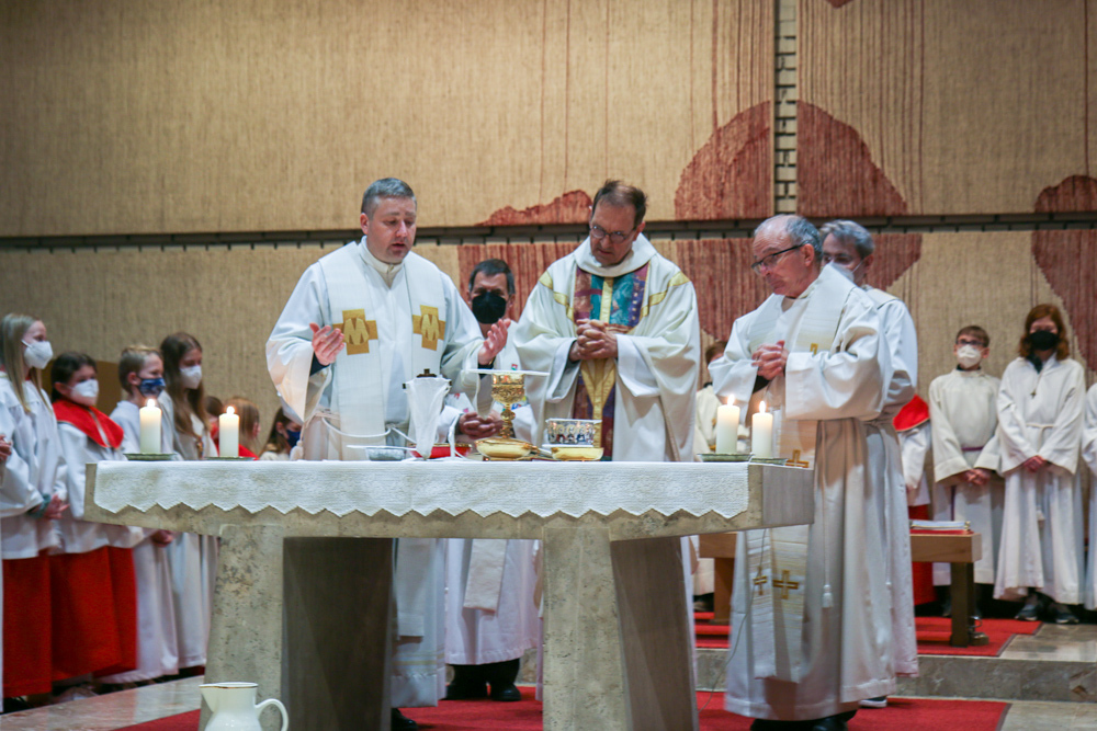 Am Gründonnerstag feierten wir eine gemeinsame Seelsorgeraum-Messe in der Pfarrkirche Lieboch. Mit dabei waren drei Priester, drei Diakone, drei Pastoralreferentinnen, über 20 Ministranten und verschiedene weitere Dienste aus unseren sechs Pfarren.