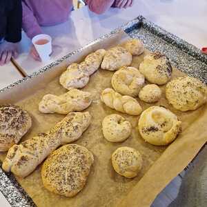 Jeweils an drei Freitagen hintereinander fanden sich in den drei Kapfenberger Pfarren viele motivierte Kinder ein, um köstliche Brot-Weckerln zu backen. Das Formen der Weckerln machte großen Spaß und nach Herzenslust und Geschmack durften diese mit Körnern bestreut werden. Die Backzeit des Brotes wurde mit der Erzählung vom letzten Abendmahl aus einer Kinderbibel überbrückt. Die Kinder sollten anschließend die Szene mit Jesus und den Jüngern am Tisch aus ihrer Fantasie heraus zeichnen.