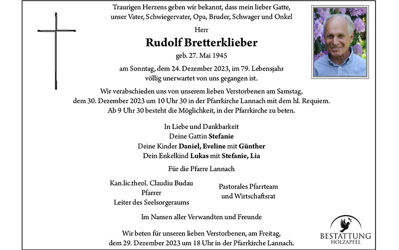 Rudolf Bretterklieber verstorben